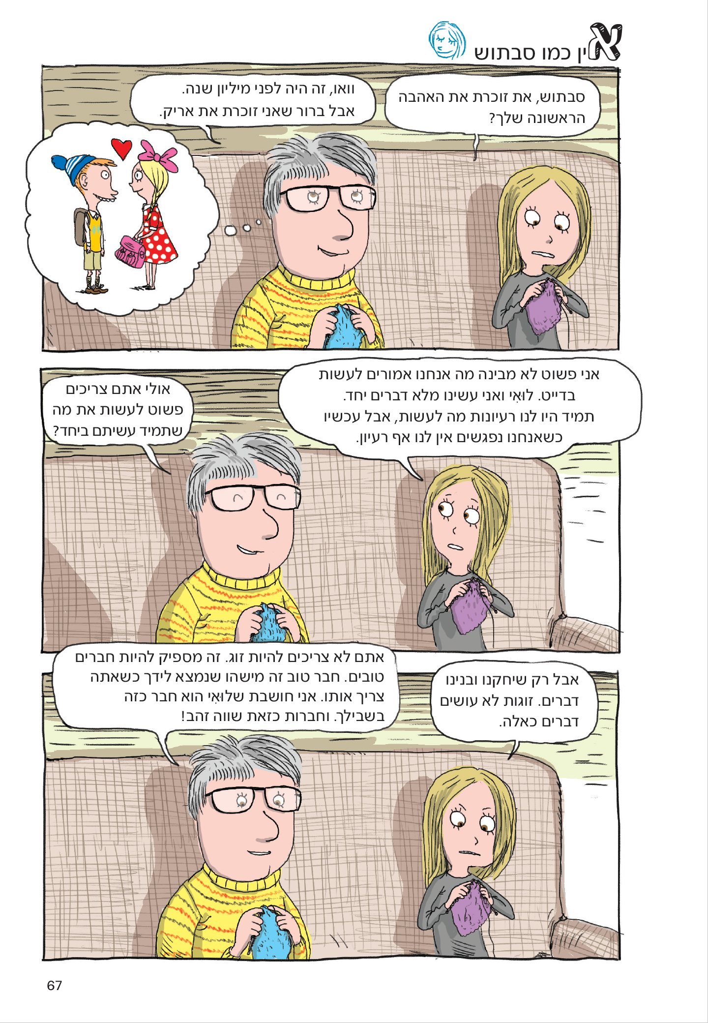 כל כך מרענן ונדיר לראות איור של גבר ואשה - גבר ואשה שאינם אבא ואמא - עירומים במיטה, ולא בספר שתכליתו ללמד ילדים איך עשו אותם, אלא סתם כך, בנונשלנטיות, כי אלה החיים. כל כך מרגש לשמוע ילדה שמסרבת לזייף נשיות בטרם עת.