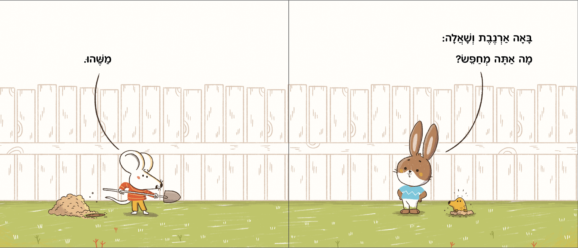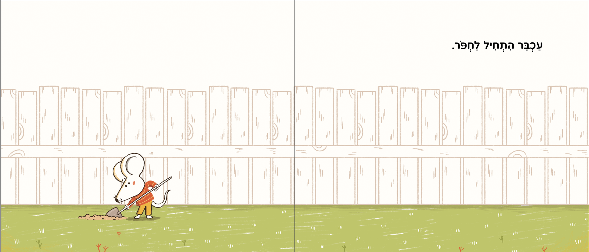 עַכְבָּר הִתְחִיל לַחְפֹּר. הוּא חָפַר וְחָפַר וְחָפַר.